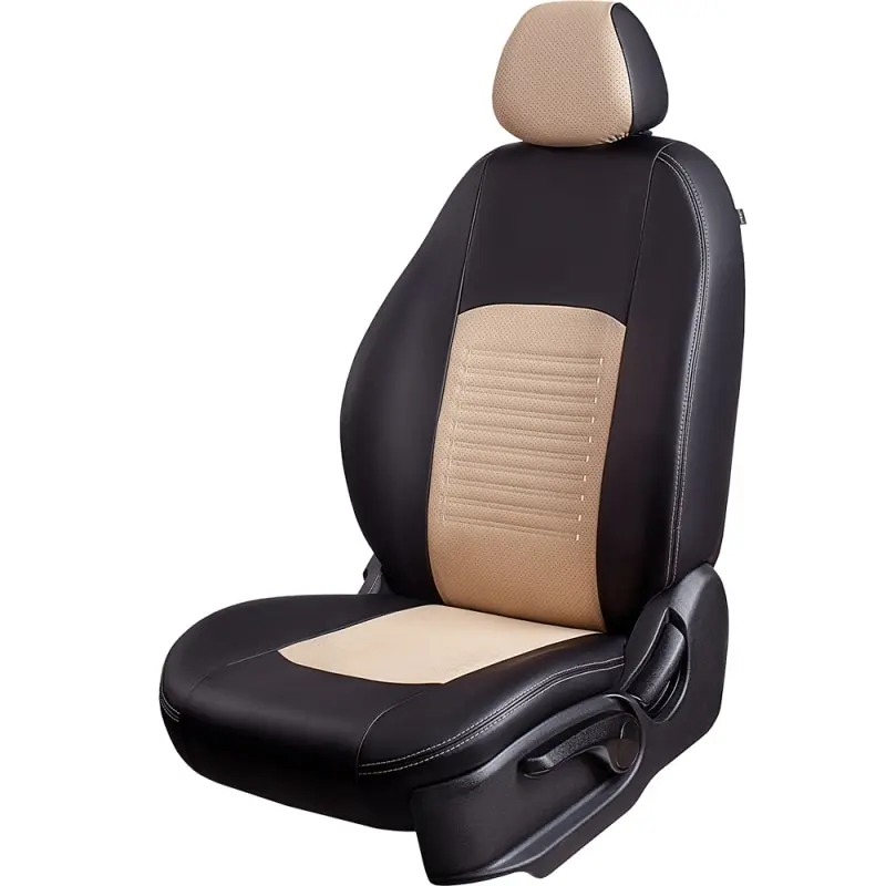 Чехлы модельные для Kia Seltos -1, 06.2019, SP2 Кроссовер 5 двер. Разд.зад.спин 60/40 3 Г-образ подголовникаТурин Экокожа Чёрный , цвет вставки - Бежевый.Комплектация: