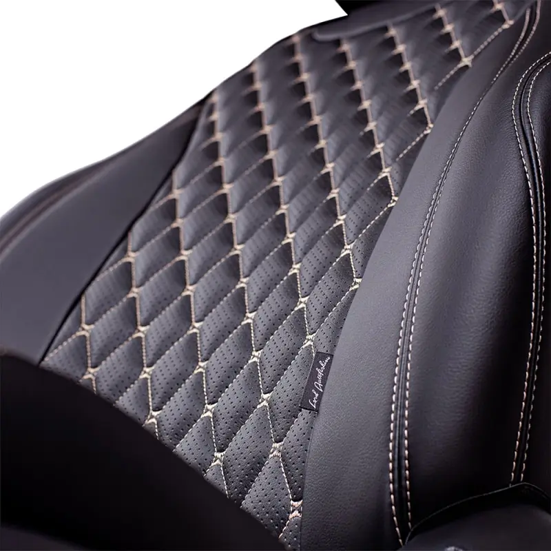 Чехлы модельные для Ford Focus -2, 08.2004-06.2011, C307 Седан/ Хэтч/ Универс. Разд.зад.спин.и сид.60/40-без подлок. 2Г-образ.подгол.Байрон Экокожа Чёрный , цвет вставки - Чёрный , цвет стежки - Бежевый.Комплект чехлов для сидений автомобиля Ford Focus-2 (C307) 2004-2011 года премиум класса, серии «Байрон». На центральных деталях выполнена стёжка на спец оборудовании, боковые детали триплированы на поролоне 5 мм и отстрочены 2-х игольной строчкой. Спинка задних сидений закрыта карпетом. Предусмотрены все технологические отверстия. Данный чехол разработан по лекалам оригинального сиденья автомобиля, что гарантирует идеальную посадку. Надёжный крепеж, отличная прочность материала. Производятся из экокожи высокого качества, гарантированная толщина полимерного слоя 1,1 ммюКомплектация:спинки передние - 2 шт,сиденья передние - 2 шт,подголовники передние - 2 шт,подлокотник передний - нет,спинки задние - 2 шт,сиденья задние - 2 шт,подголовники задние - 2 шт,подлокотник задний - нет.Всего 12 элементов и крепежный набор для установки.