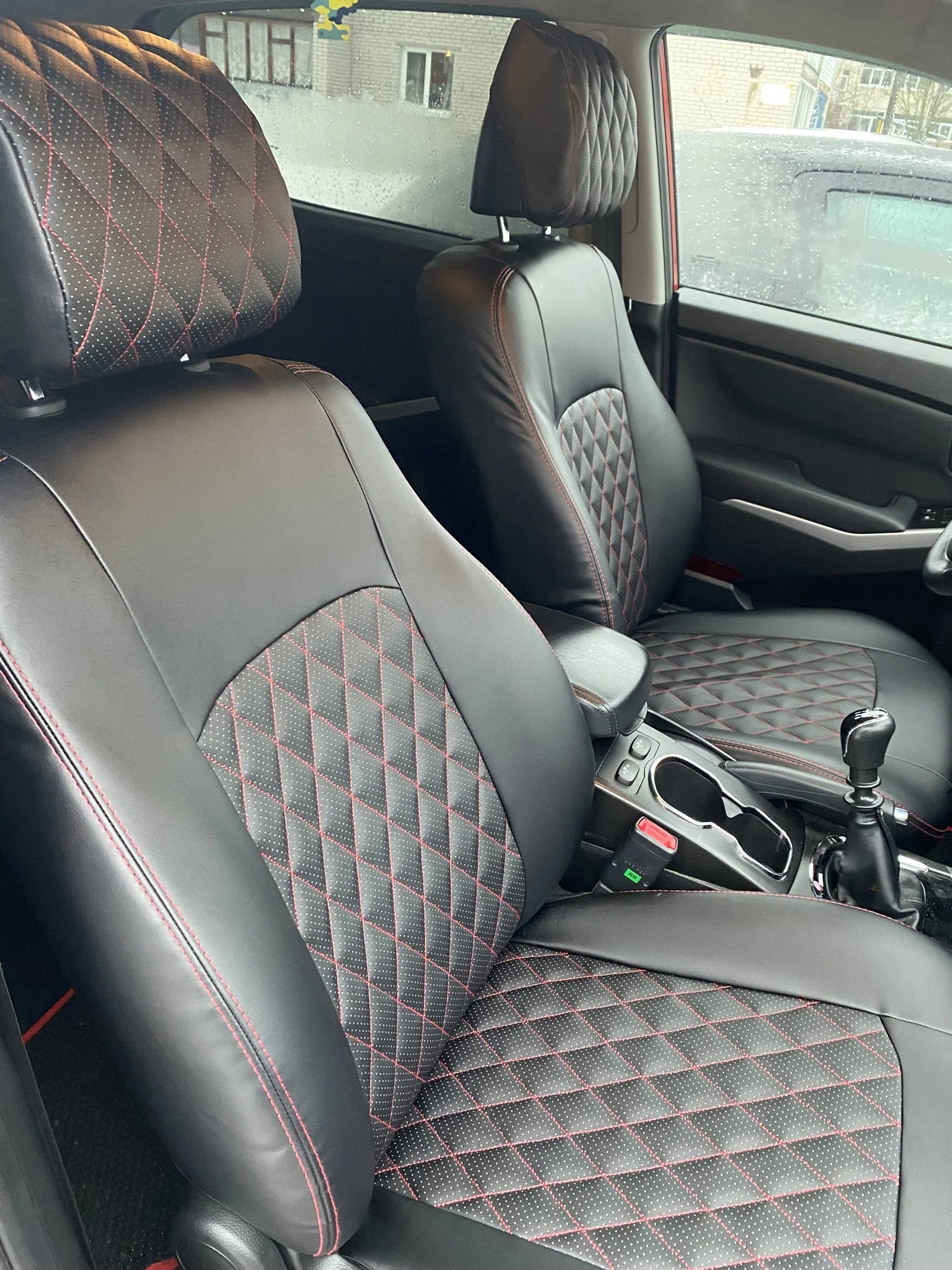 Чехлы модельные для SsangYong Actyon -2 NEW, с 01.2011, CK Кроссовер 5 двер. Разд.зад.спин.и сид.40/60, 3Г-образ.подголов.Турин Ромб Экокожа Чёрный , цвет вставки - Чёрный , цвет стежки - Красный.Комплект чехлов для сидений автомобиля Ssang Yong Actyon NEW 2011+ года серии «Турин Ромб». Выполнен из экокожи высокого качества. Спинка задних сидений закрыта карпетом. Центральные детали авточехла отстрочены ромбом на специальном оборудование. Данный чехол разработан по лекалам оригинального сиденья автомобиля, что гарантирует отличную посадку на ваши сиденья. Серия авто чехлов «Турин Ромб» прошла испытание на срабатывание подушек безопасности в научном центре “НАМИ” города Москвы и получила сертификат № РЩСС RU.Afl61.H00011. Комплектация:спинки передние - 2 шт,сиденья передние - 2 шт,подголовники передние - 2 шт,подлокотник передний - нет,спинки задние - 2 шт,сиденья задние - 2 шт,подголовники задние - 3 шт,подлокотник задний - 1 шт.Всего 14 элементов и крепежный набор для установки.