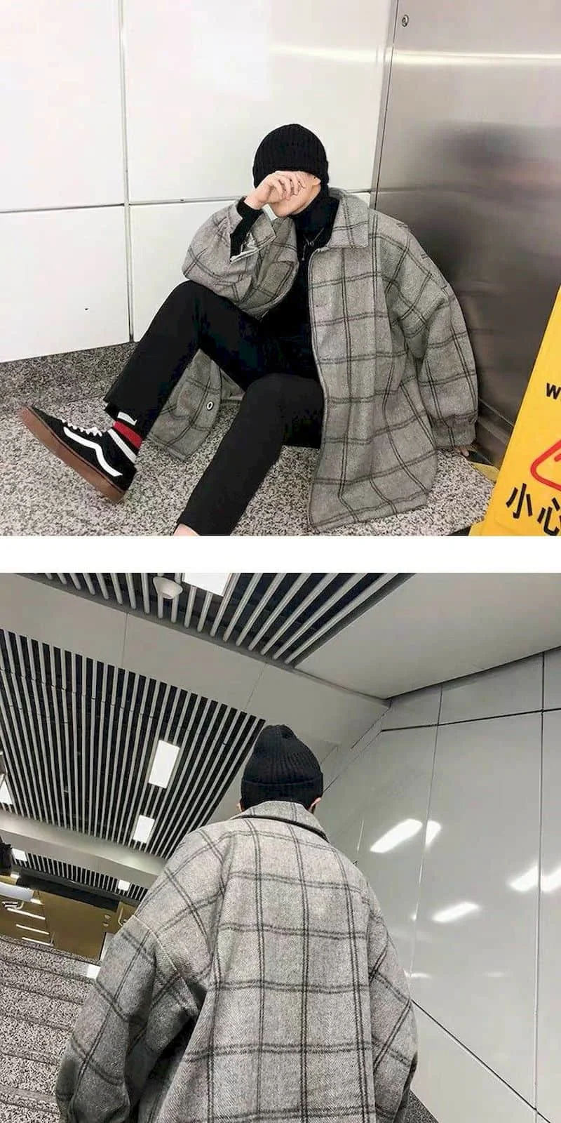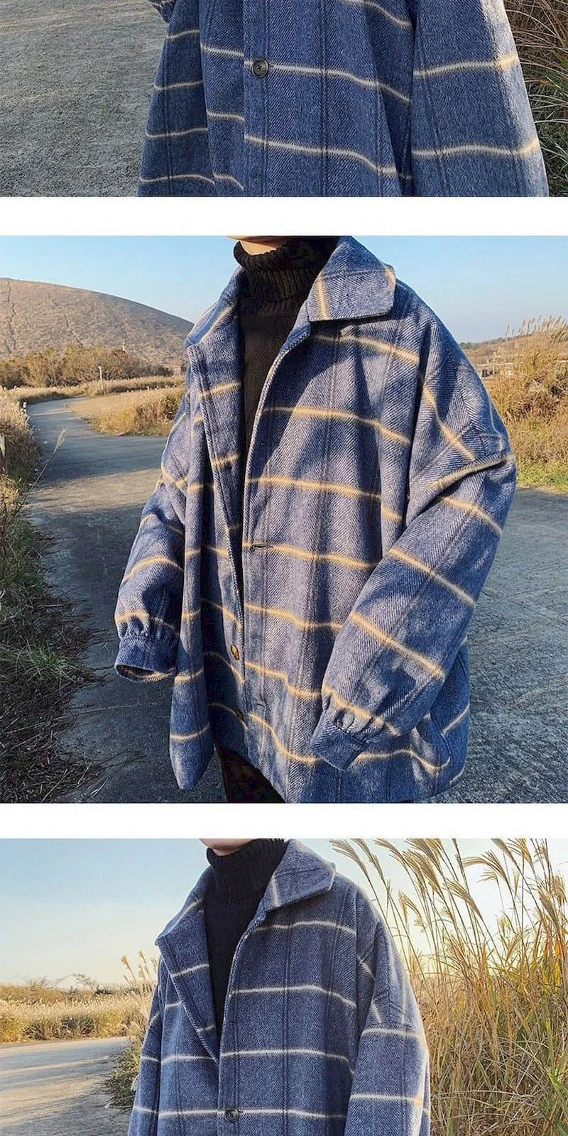 Мужское зимнее пальто Ins, Мужская корейская модная длинная клетчат...