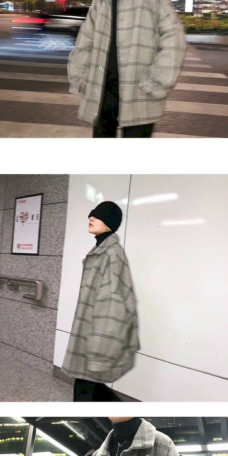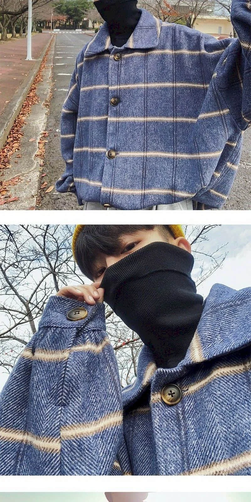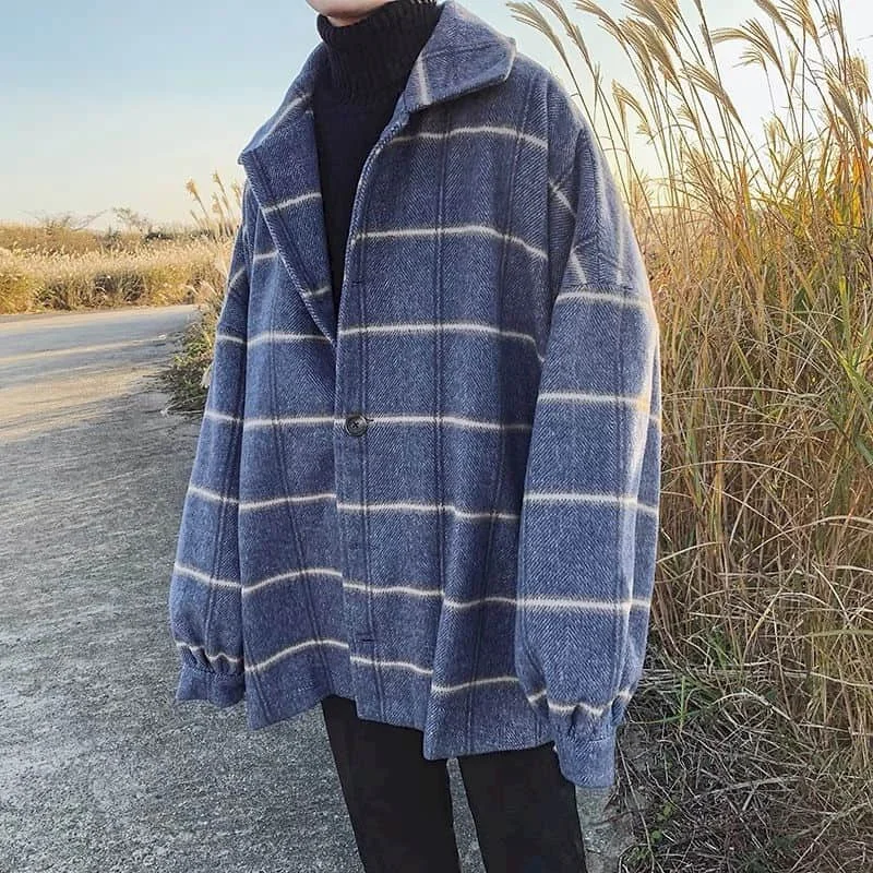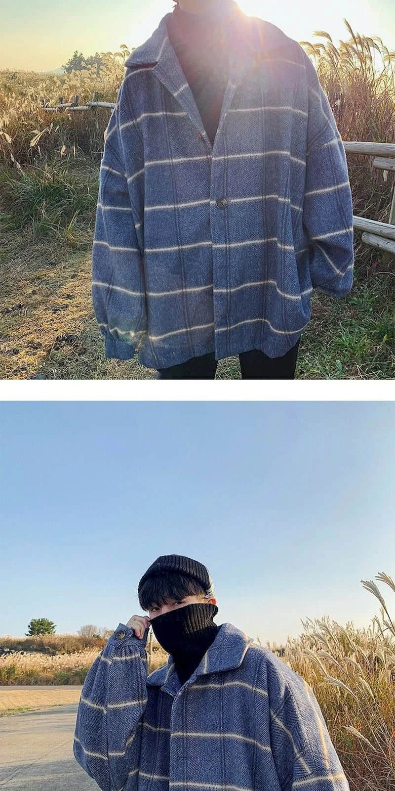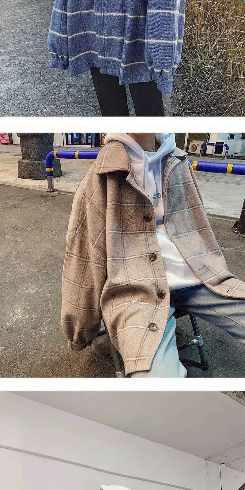 Куртка мужская шерстяная в клетку, уличная ветровка в стиле Харадзю...