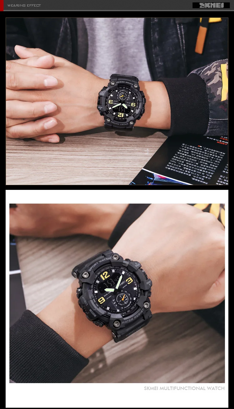 Новинка 2021, мужские спортивные часы, кварцевые наручные часы, Япония, для перемещения, для мужчин, t, 3 времени, двойной дисплей, аналоговый, светодиодный, электронный, военный, SKMEI, Relogio Masculino