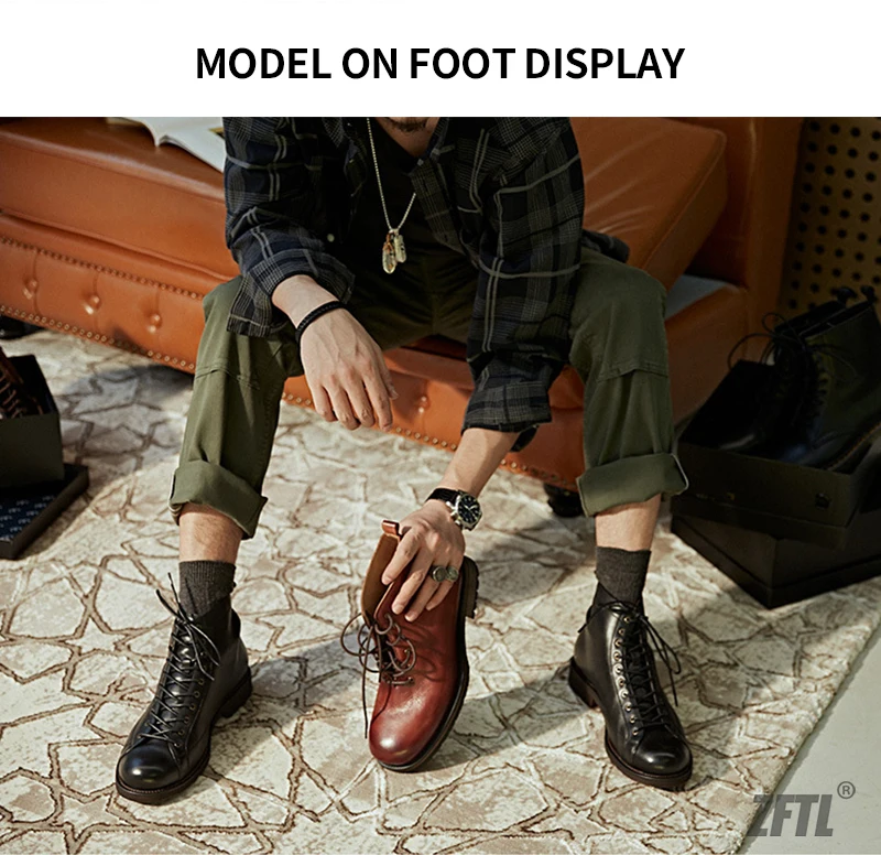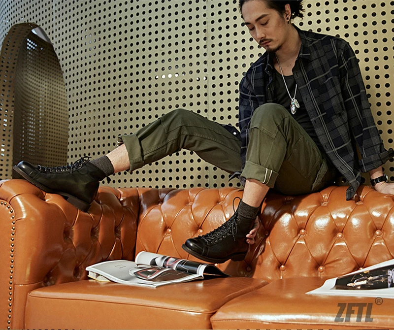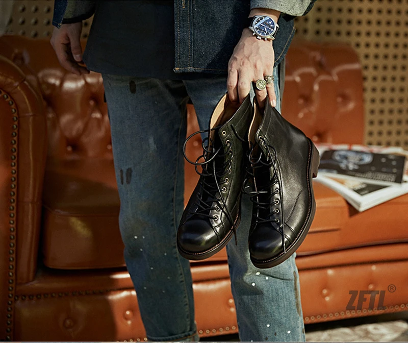 ZFTLмужские ботинки из воловьей кожи в американском ретро стиле; Му...