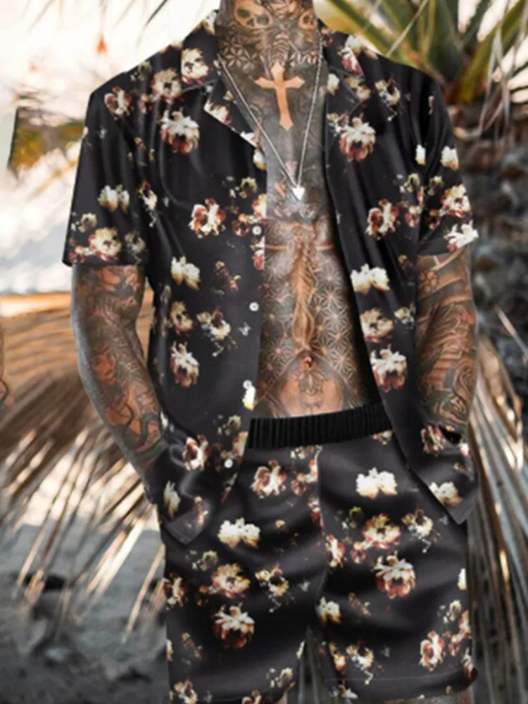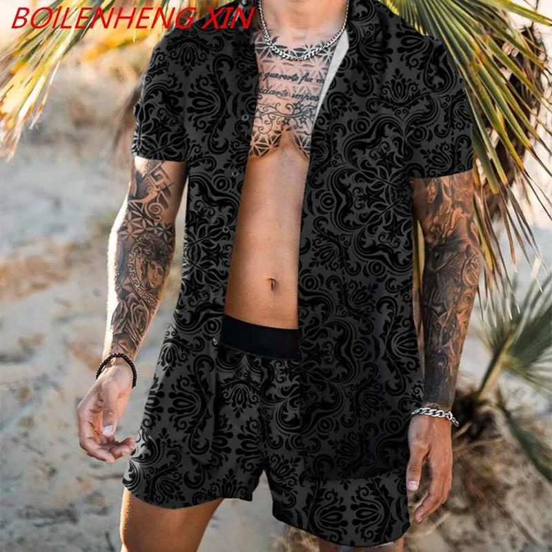 Комплект для мужчин с коротким рукавом, гавайская рубашка с цветочн...