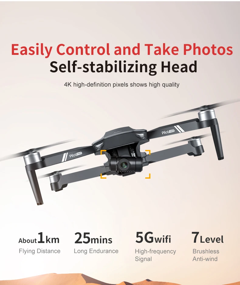 -Барометр высоты + full HD 4K камера, что делает аэрофотосъемку более четкой.
