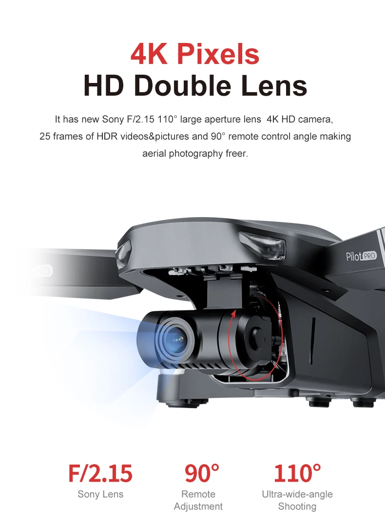 Регулируемая камера 4K HD:Поддержка съемки 4K 30fps с 8 мегапикселей CMOS сенсор, широкоугольный объектив с фокусным расстоянием, угол обзора камеры по дистанционный пульт, регулируемый 0 °- 90 ° угол наклона, сохраняют наиболее оригинальным деталям, сделайте Ваше творение более вдохновляющим.