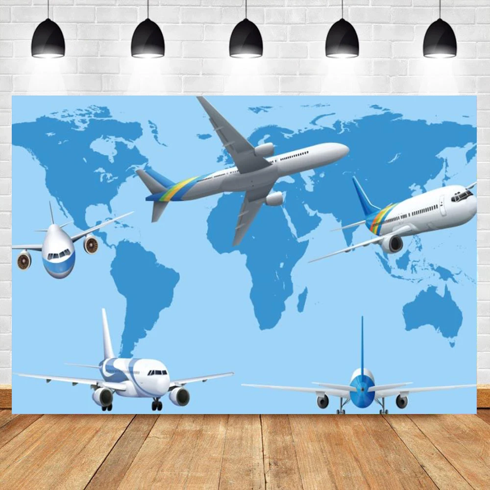 Фон Laeacco для фотосъемки в фотостудии, с изображением самолета, карты мира