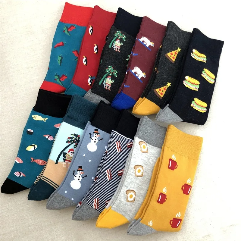 Носки мужские и женские, с изображением сэндвича, гамбургера, суши, пиццы, яиц, Чили, белого медведя, снеговика, пингвина