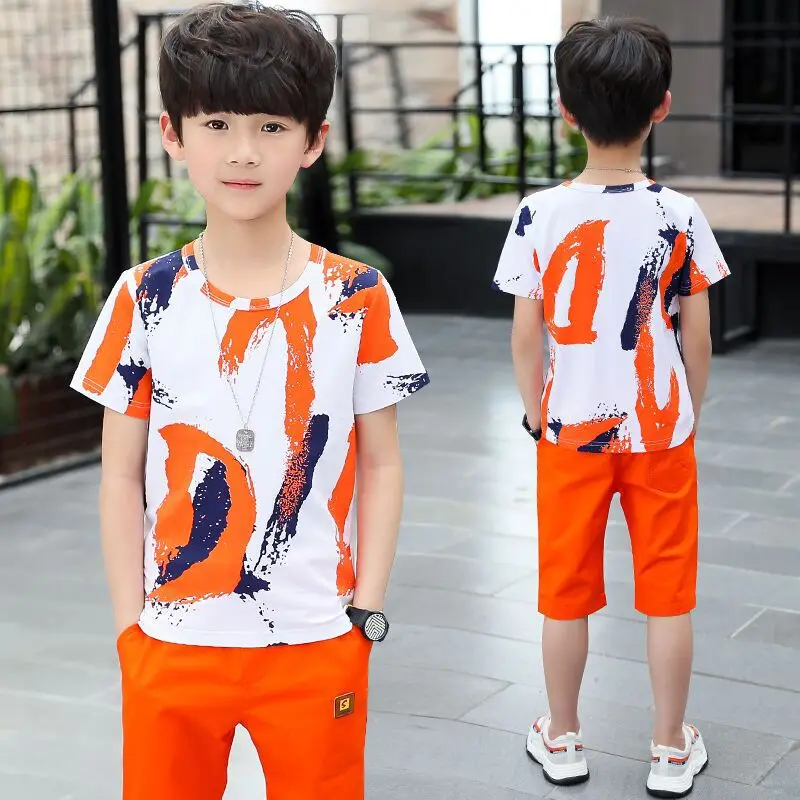 НОВЫЕ комплекты одежды для мальчиков, летняя футболка с короткими рукавами + штаны, комплект одежды для маленьких мальчиков, Детский костюм для подростков 4, 6, 8, 10, 12 лет