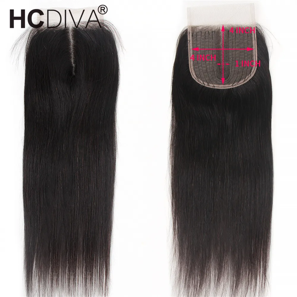 24 дюйма 4*4 Кружева Закрытие средняя часть прямые человеческие вол...