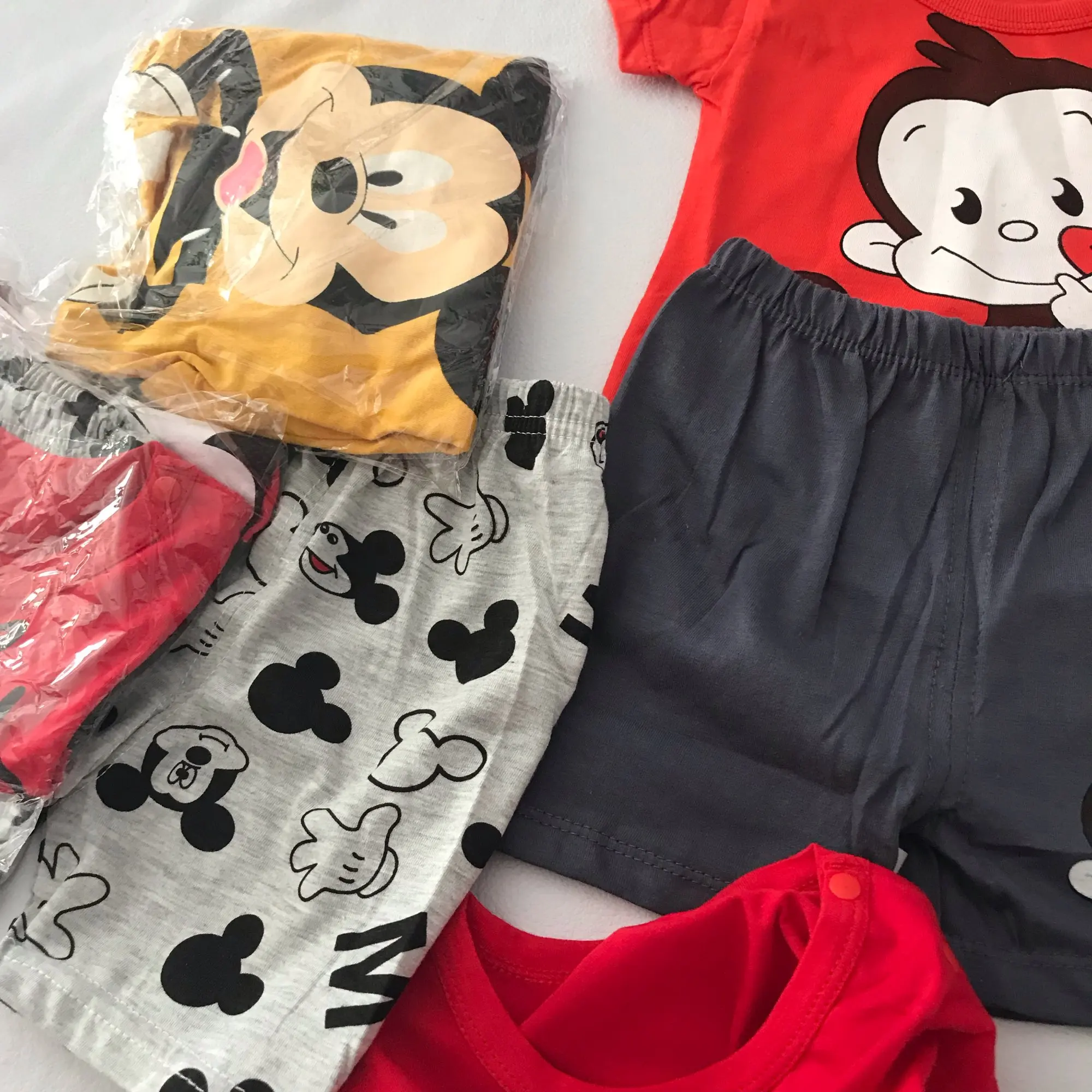 Комплект детской одежды, футболка для маленьких мальчиковдевочек + шорты, летняя одежда, хлопковый мультяшный Повседневный Спортивный костюм для мальчиков, комплект детской одежды