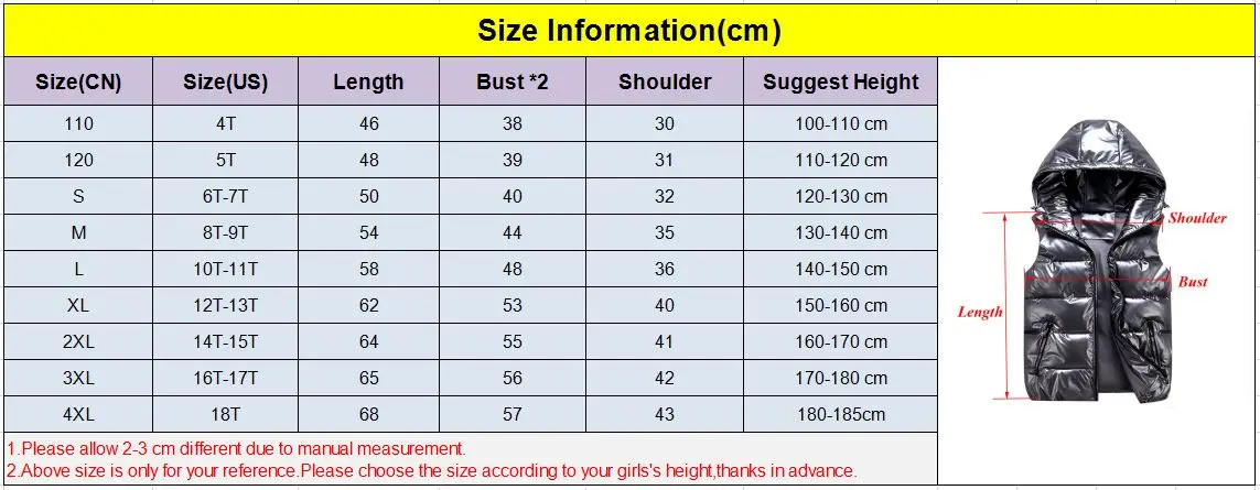 Примечание: Когда вы выбираете размер, пожалуйста, в соответствии с фактическим ростом ребенка, пожалуйста, выберите размер в нормальном состоянии, если у вас есть проблемы, пожалуйста, свяжитесь с нами в первый раз. Спасибо за чтение.