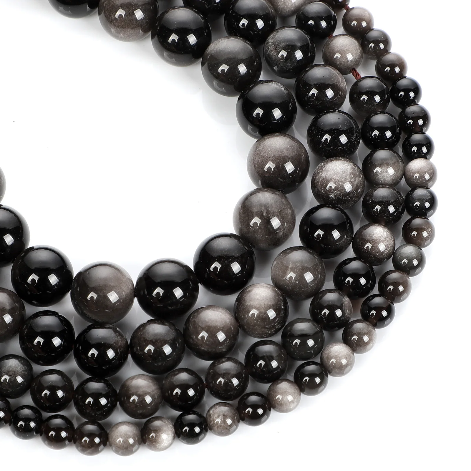Бусины из натурального камня, Серебряный обсидиан, Очаровательные Круглые бусины россыпью для изготовления ювелирных изделий, рукоделия, браслета сделай сам, 4-12 мм
