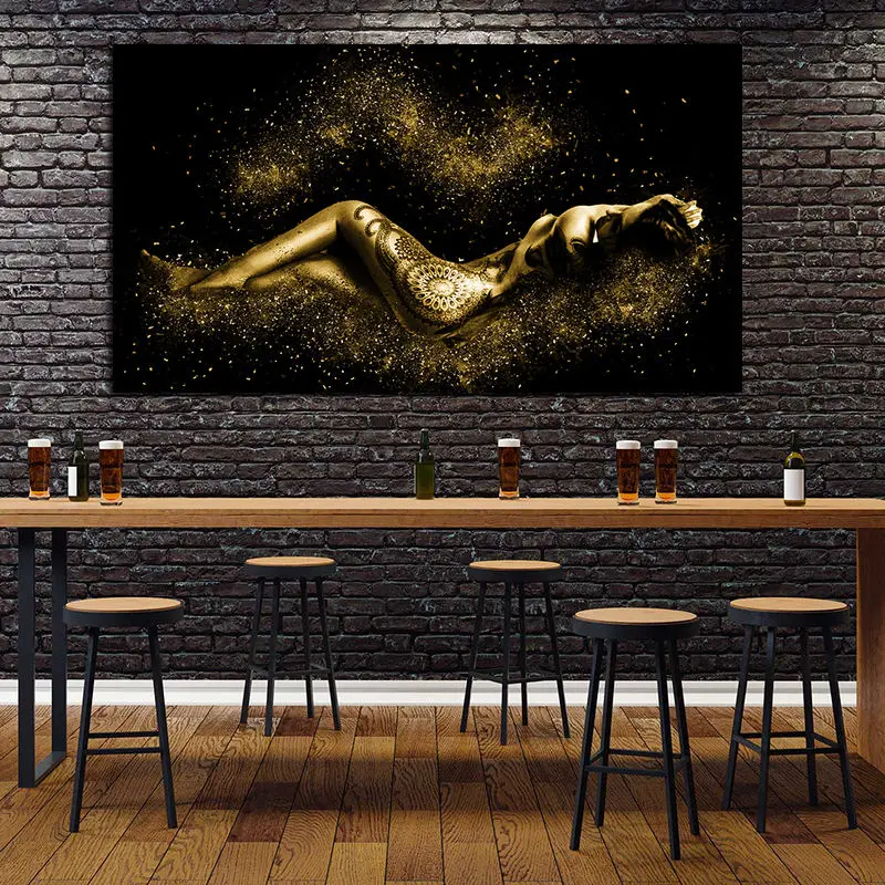 Черно-Золотая абстрактная привлекательная Женская фигурка на холсте картина плакат и принты Настенная картина для гостиной Декор без рамки