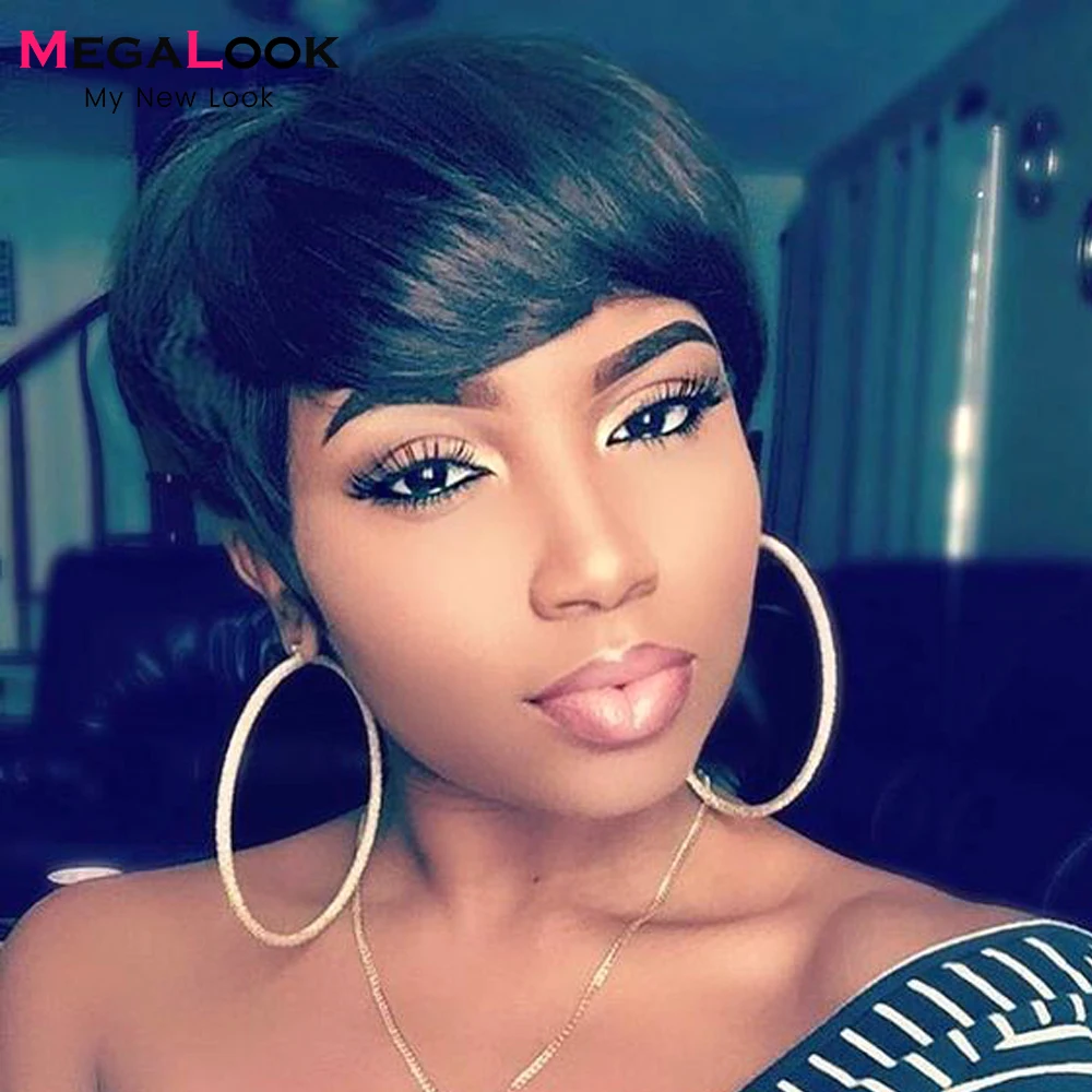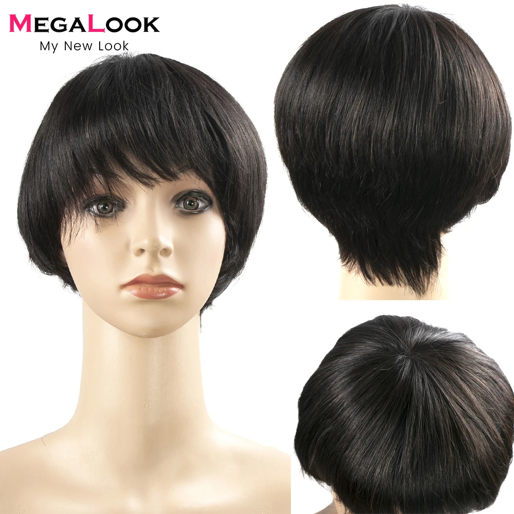 Парик с коротким вырезом, парик из человеческих волос, парик из прямых волос, бразильский парик из неповрежденных волос для женщин, парик из человеческих волос, парик на всю машину с челкой