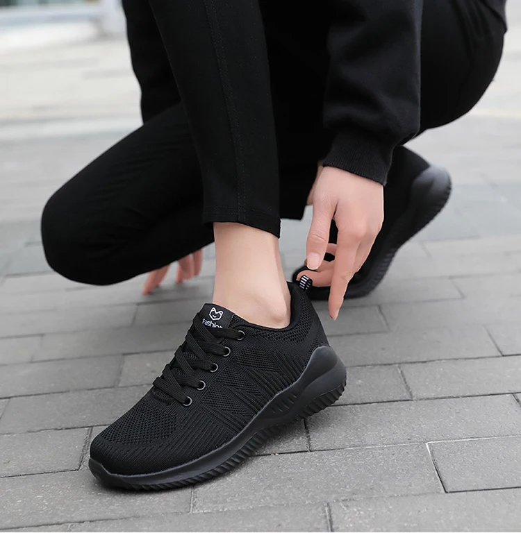 Женские дышащие спортивные кроссовки, удобные черные, белые кроссов...