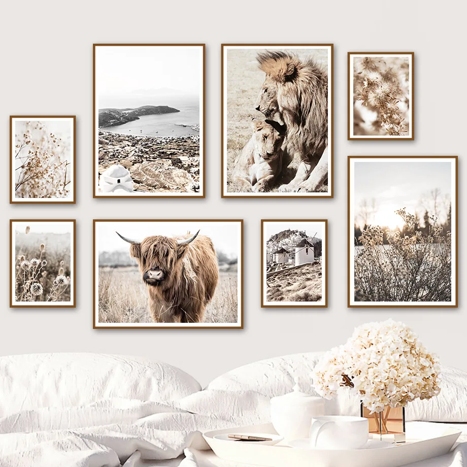 Лев лошадь птица тростник Одуванчик дерево девушка настенная живопи...