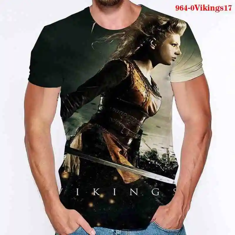 Футболка Мужскаяженская с 3D-принтом викингов, модный оверсайз топ ...