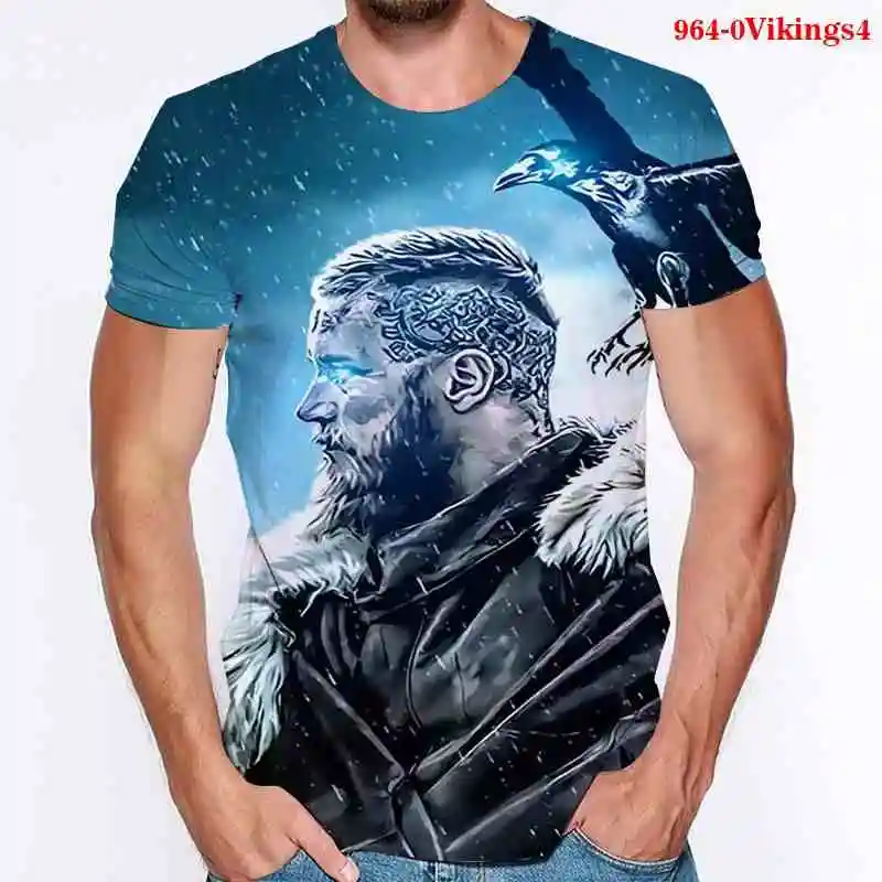 Футболка мужская, с 3D-принтом викингов, большого размера, с коротким рукавом, в стиле Харадзюку, лето 2021