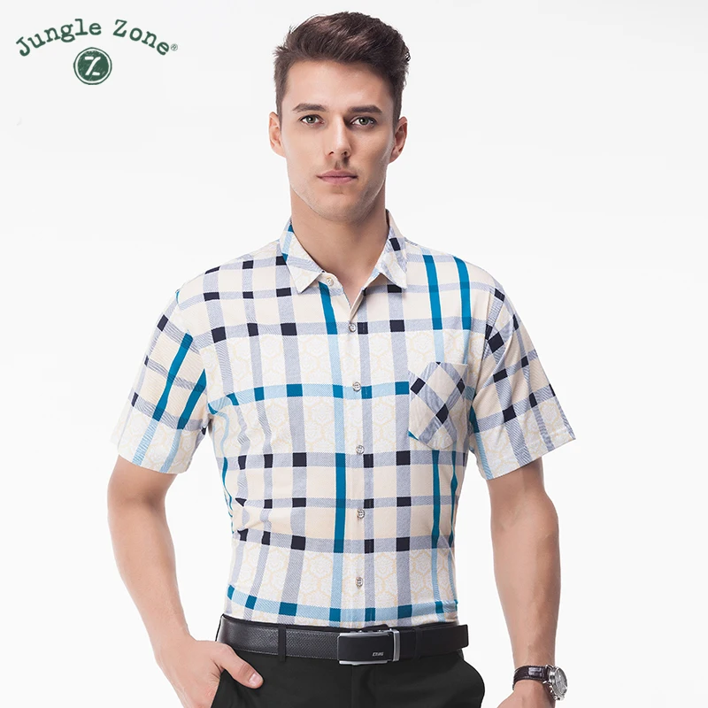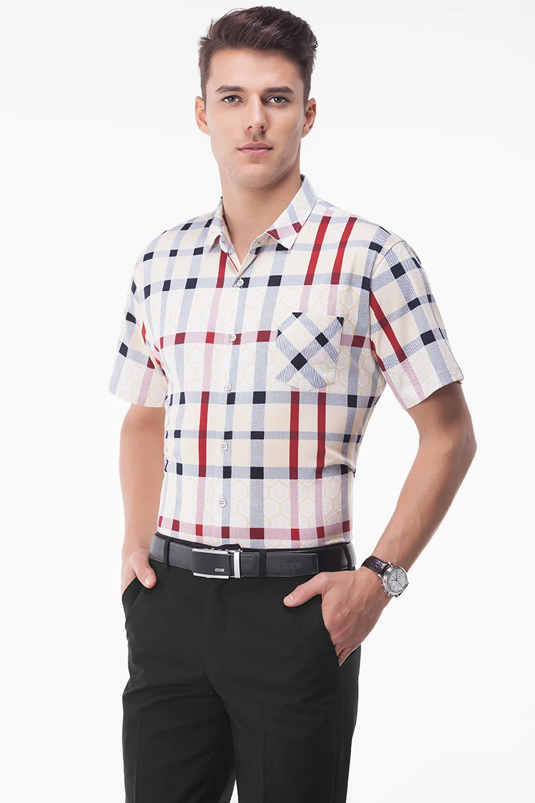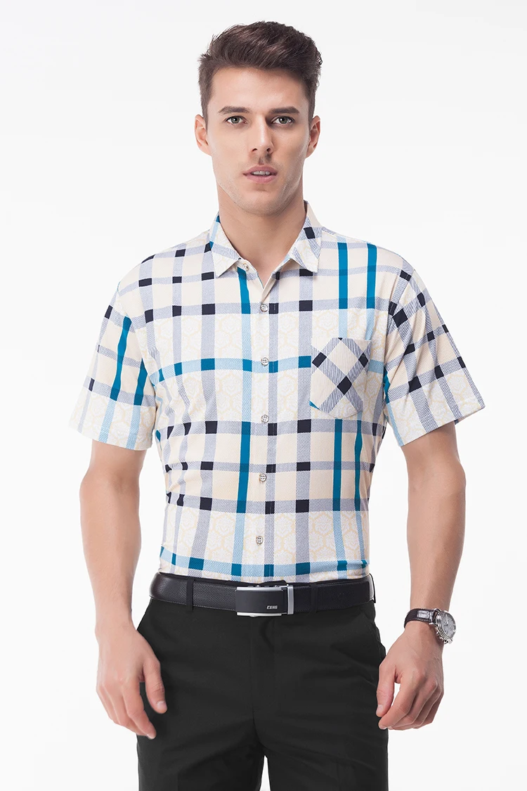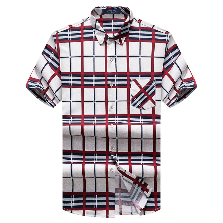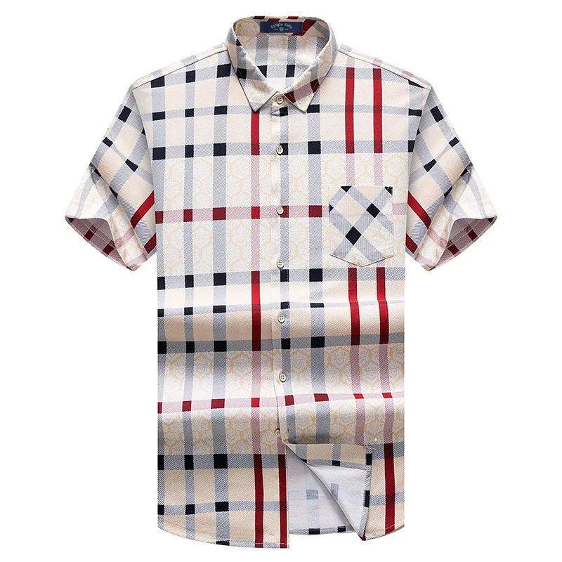 Рубашка мужская с коротким рукавом, Повседневная клетчатая рубашка с принтом, лето 2021