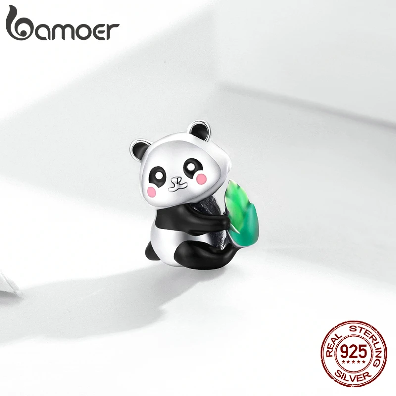 Серебряная подвеска bamoer в виде панды с бамбуковым кулоном из стерлингового серебра 925 пробы, оригинальный женский браслет SCC1832