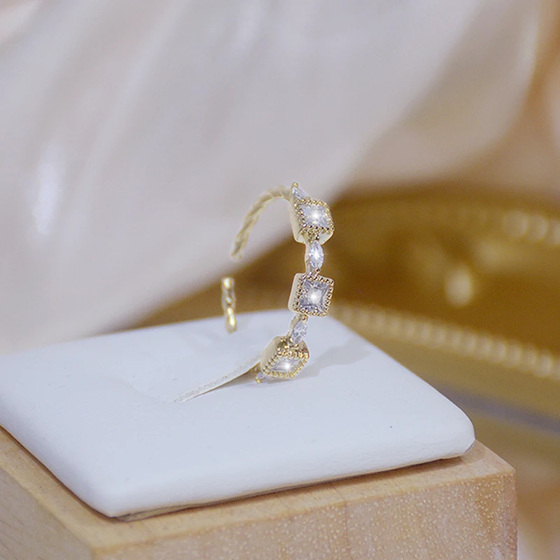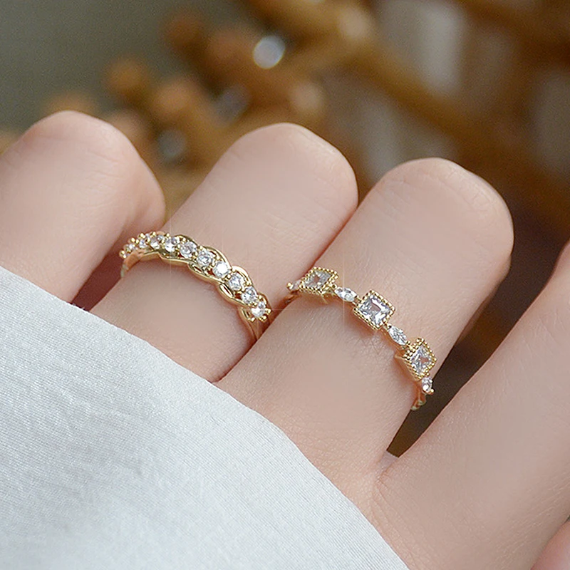 Кольцо обручальное женское золотистого цвета с кристаллом и прозрачным фианитом класса ААА
