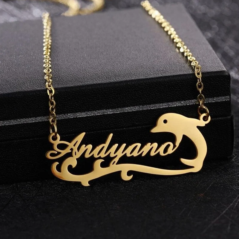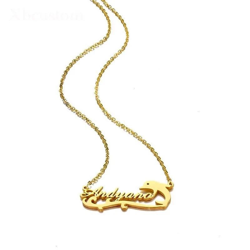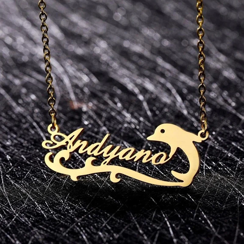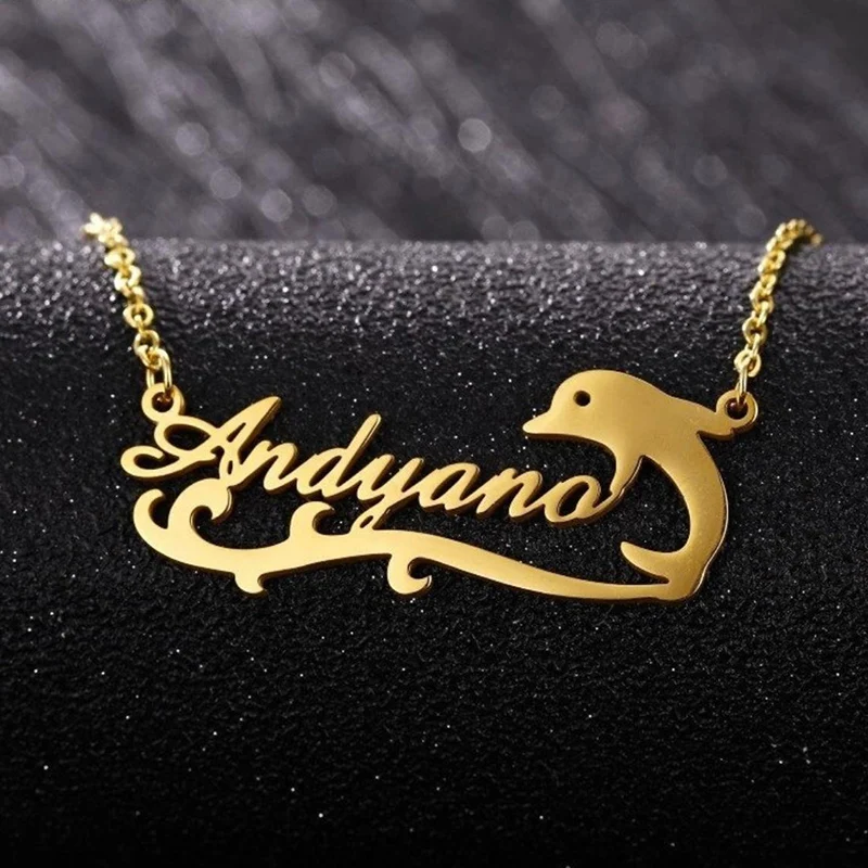 Ожерелье с именем на заказ, модное ожерелье с дельфином из нержавеющей стали, кулон с персонализированным именем, аксессуары для девушек