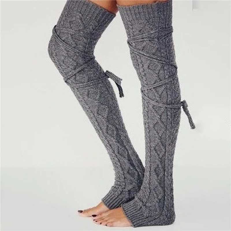 Плетеные вязаные гетры выше колена, Гольфы с завязками, Утепленные длинные гетры, чулки, женские зимние носки