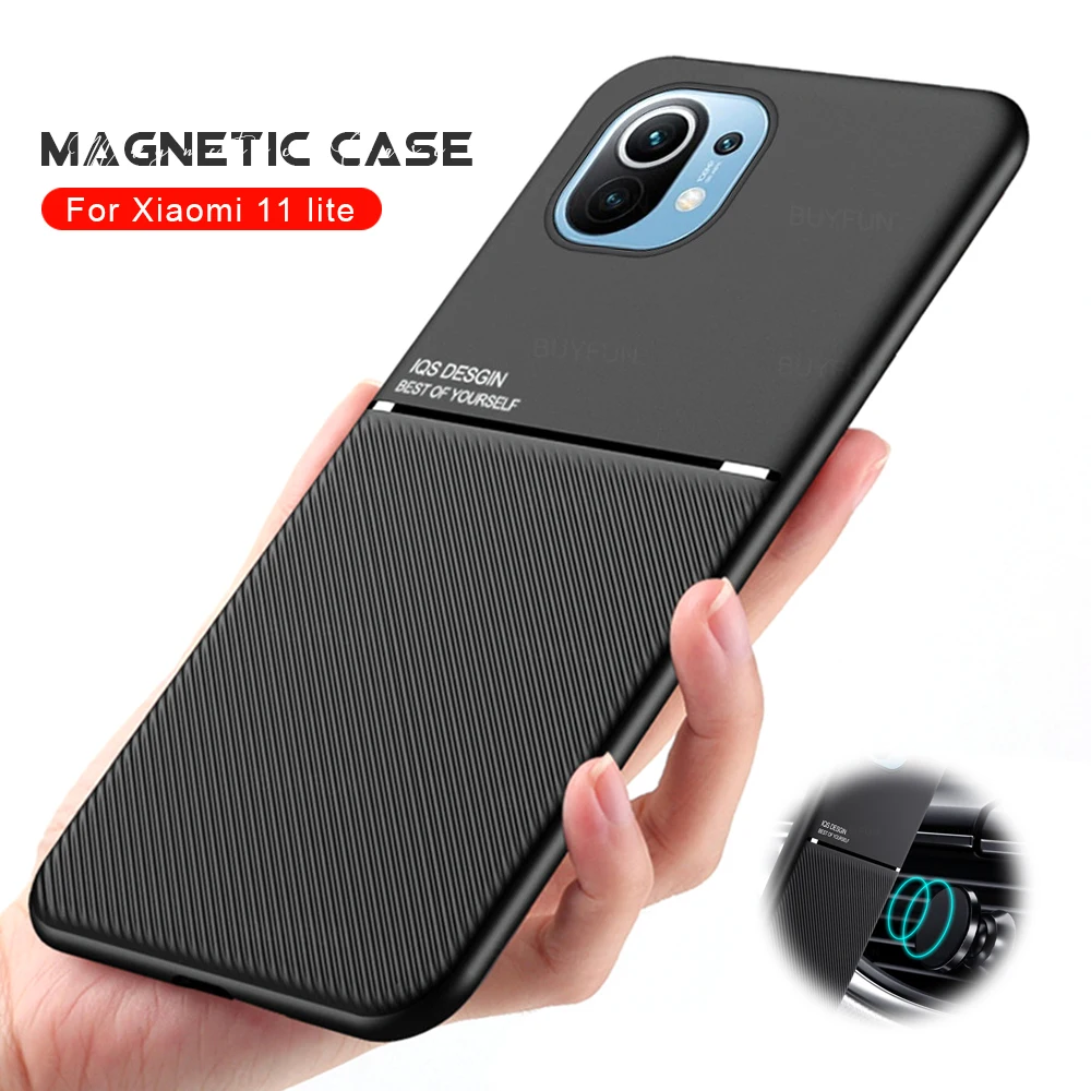 Автомобильный магнитный держатель, чехол для xiaomi mi11 lite, кожаный Силиконовый противоударный чехол с текстурой для xiaomi mi 11 lite 11 lite