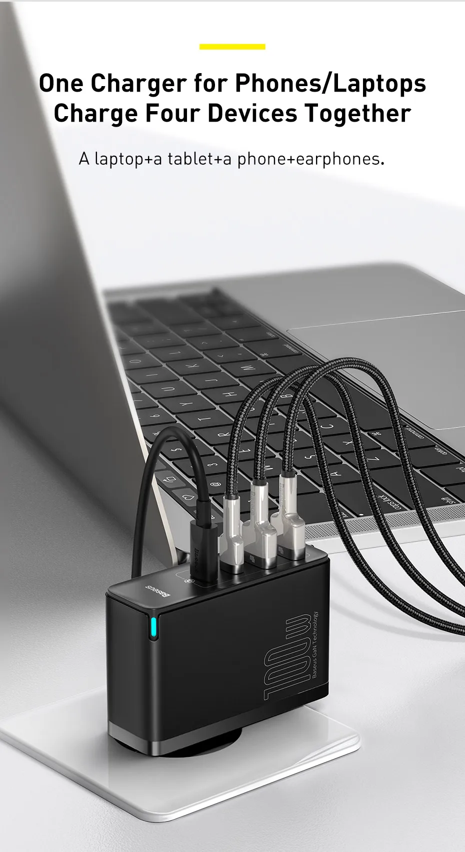 Зарядное устройство GaN 100 Вт с 4 USB-портами для быстрой зарядки
