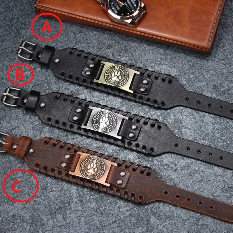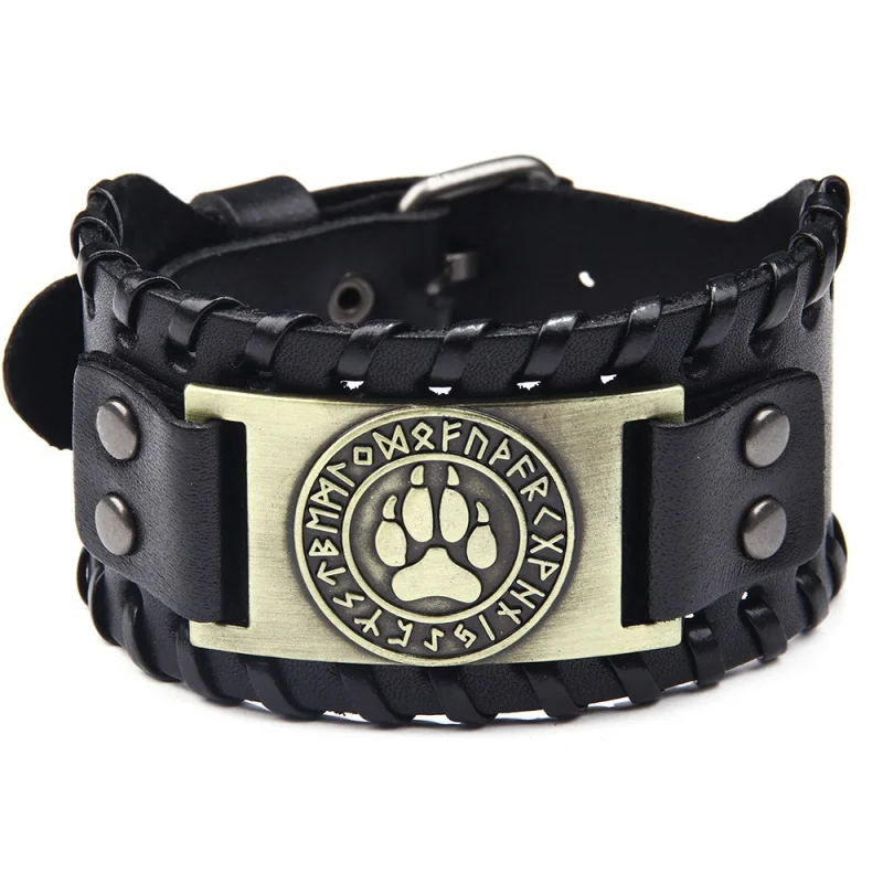 Мужской кожаный браслет Toten, скандинавский Викинг браслет из бегемота, ручное плетение, широкий регулируемый браслет, ювелирные изделия в стиле панк