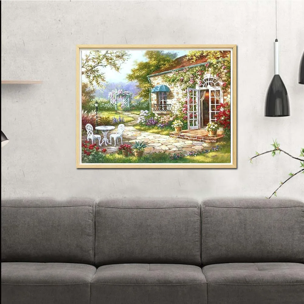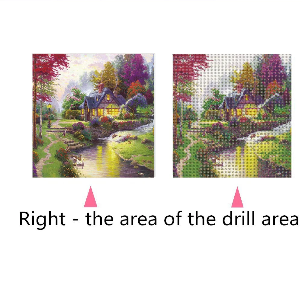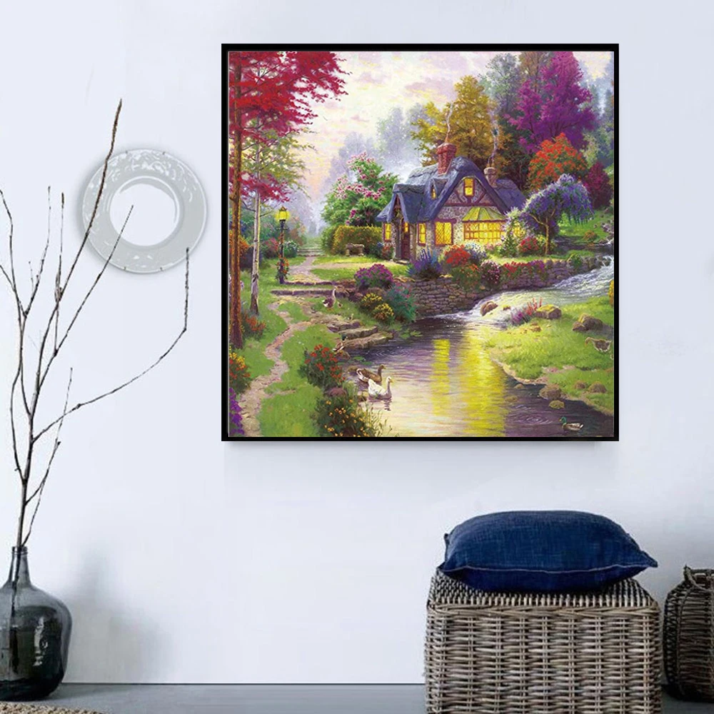 Картины из алмазов 5D сделай сам, полные страз, пейзаж, коттедж, ал...