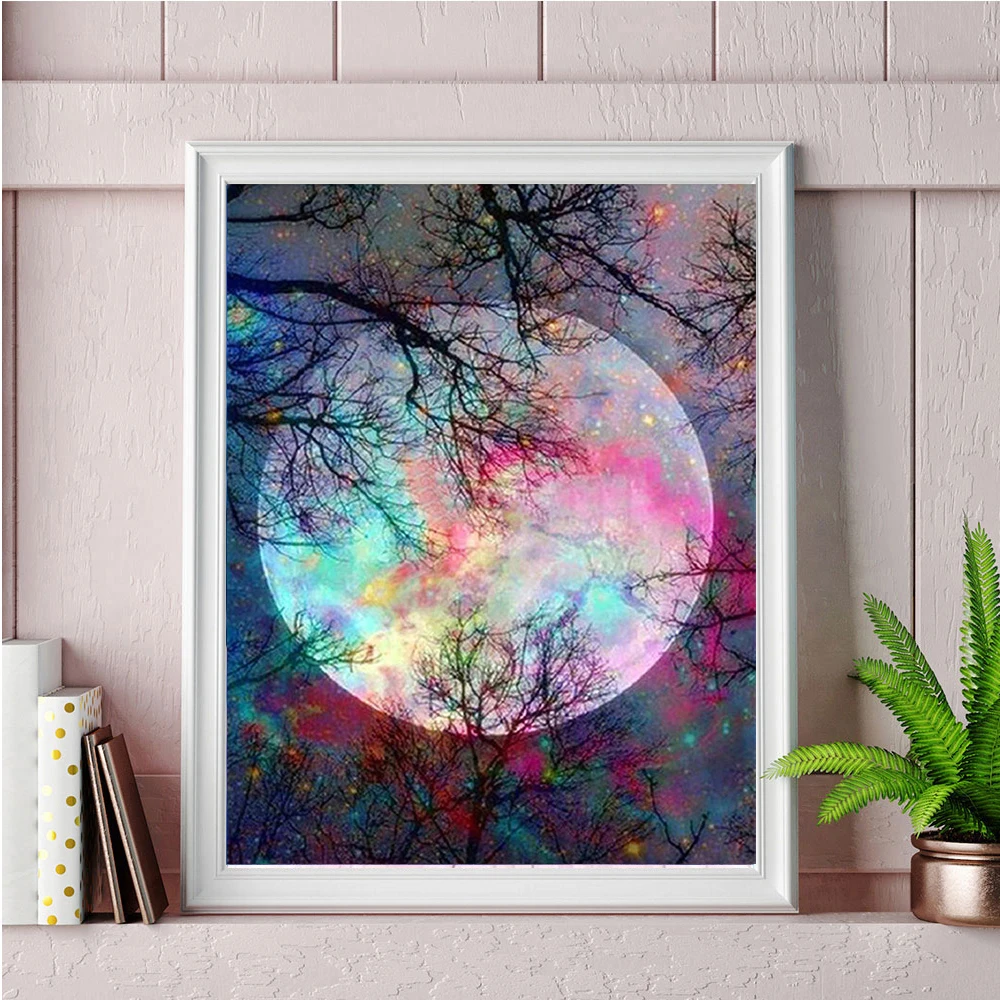 Полноформатная алмазная живопись, луна, дерево, 5D искусство, едино...