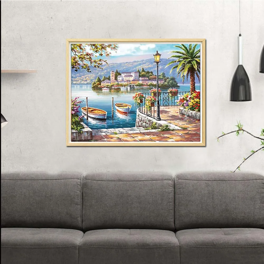 Пейзаж 5D алмазная живопись Полный алмаз морской пейзаж здание косм...