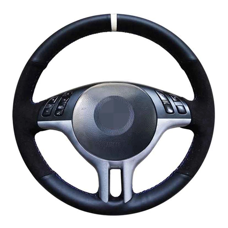 Чехол рулевого колеса автомобиля рука сшитый черный черного цвета из натуральной кожи и замши чехол рулевого колеса автомобиля s Для BMW E39 E46 325i E53 X5