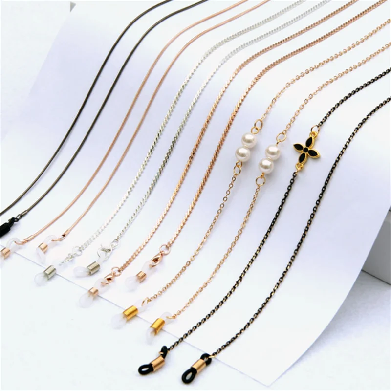 Цепочка для солнцезащитных очков Женская, металлическая амулет, модная цепочка с жемчугом, ремешок для очков, ожерелье, держатель, шнур, фиксатор для очков