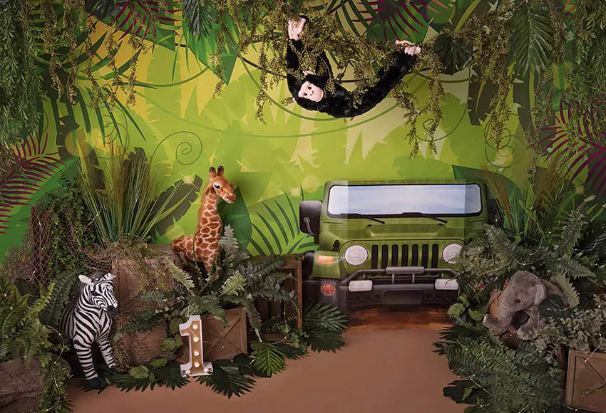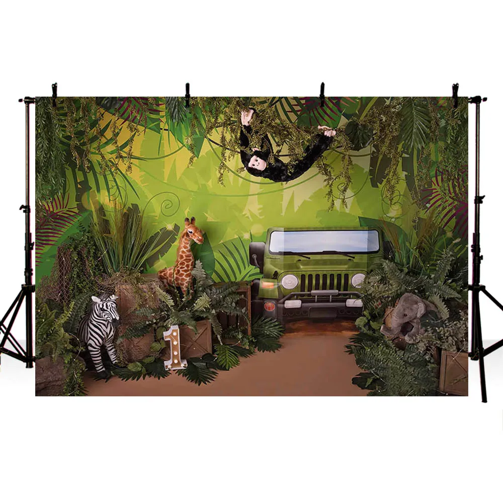 Фон Mehofond для фотосъемки на 1-й День рождения мальчик джунгли ле...