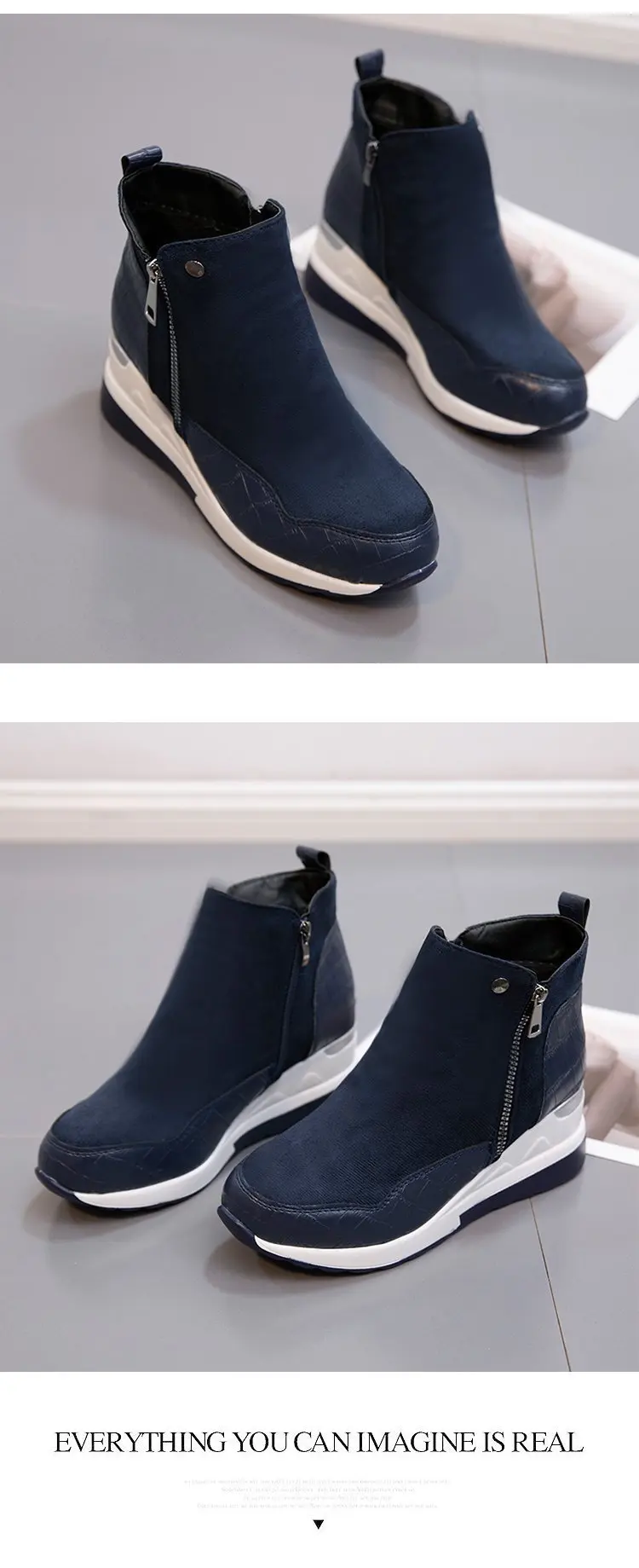 Короткие ботинки женская зимняя новая женская обувь с высоким берцем больших размеров повседневная спортивная обувь на танкетке с боковой молнией обувь для увеличения роста