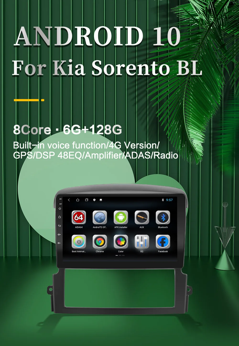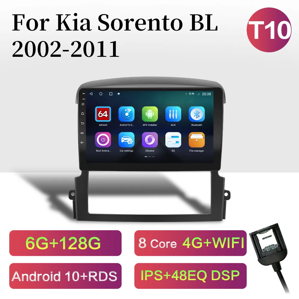 Автомагнитола для Sorento BL 2002-2011, мультимедийный проигрыватель с GPS-навигацией, IPS DSP аудио, видео плеер 2 Din DVD для Android 10,0