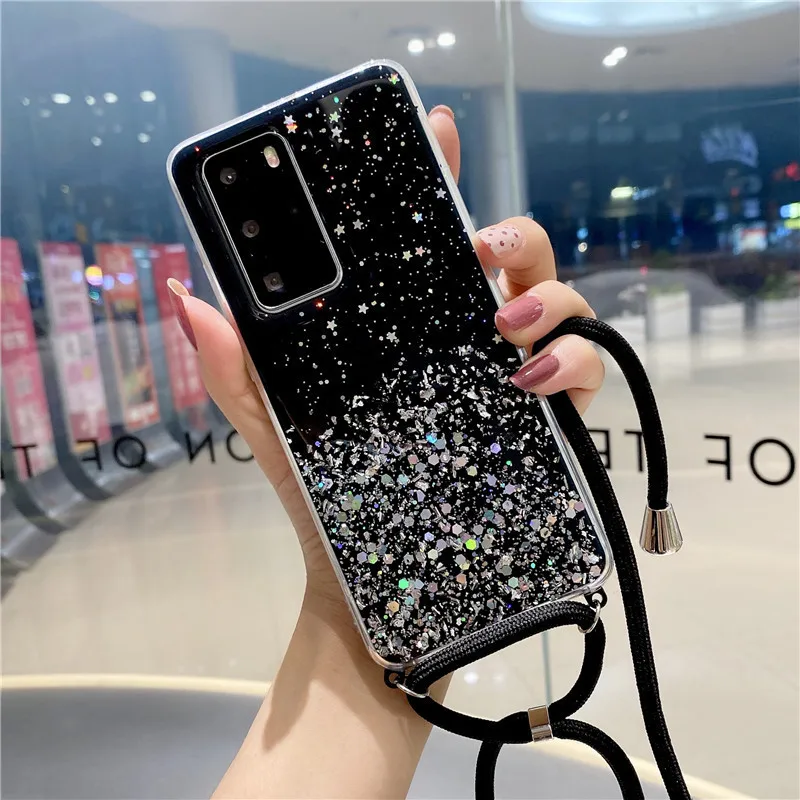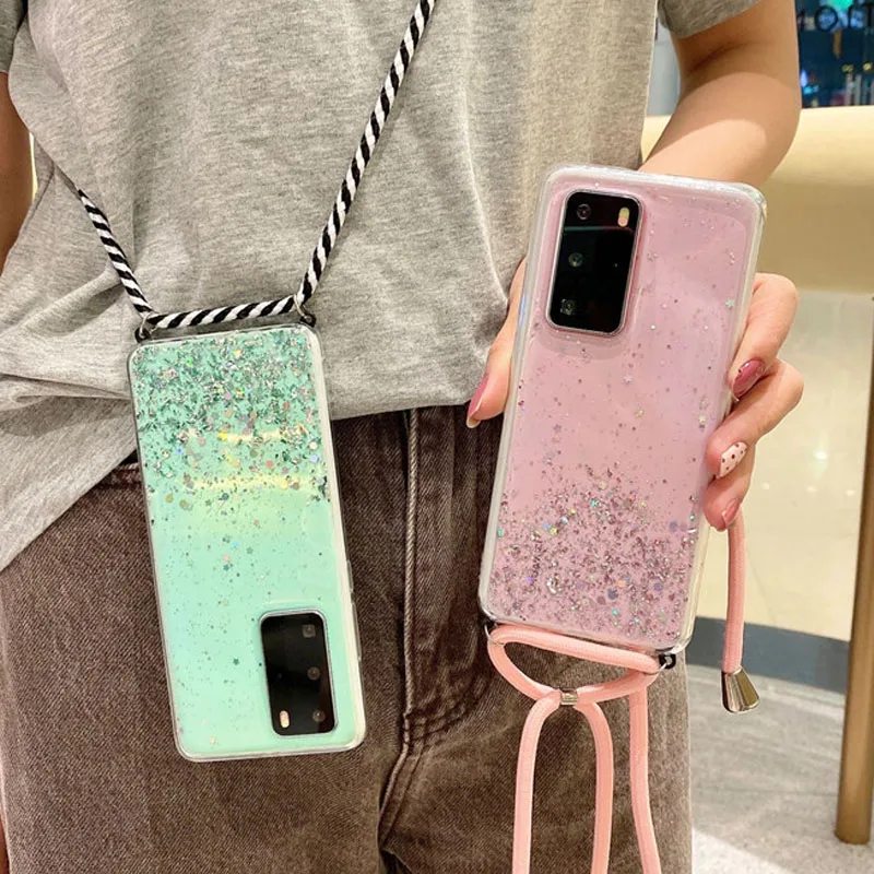 Блестящий чехол со шнурком для Huawei P30 Pro P20 P40 P10 Lite Y5 Y6 Y7 P Smart 2019 2021 Mate Honor 8X 8A 9A 10i 20i 20 10 Lite, чехол