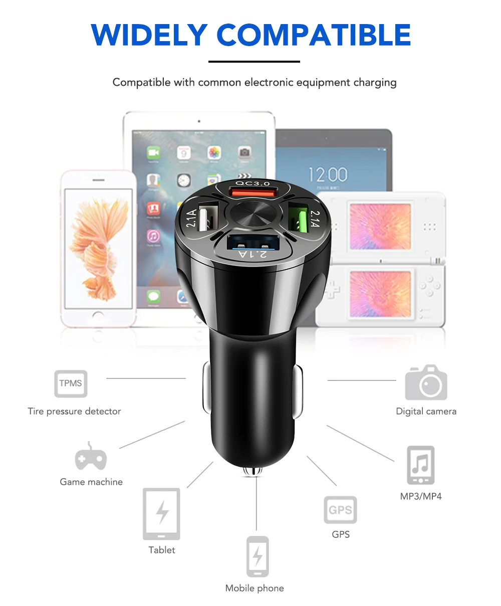 Автомобильное зарядное устройство с 4 USB-портами, быстрая зарядка ...