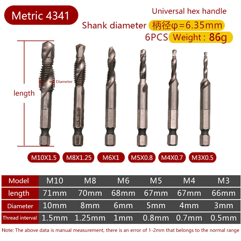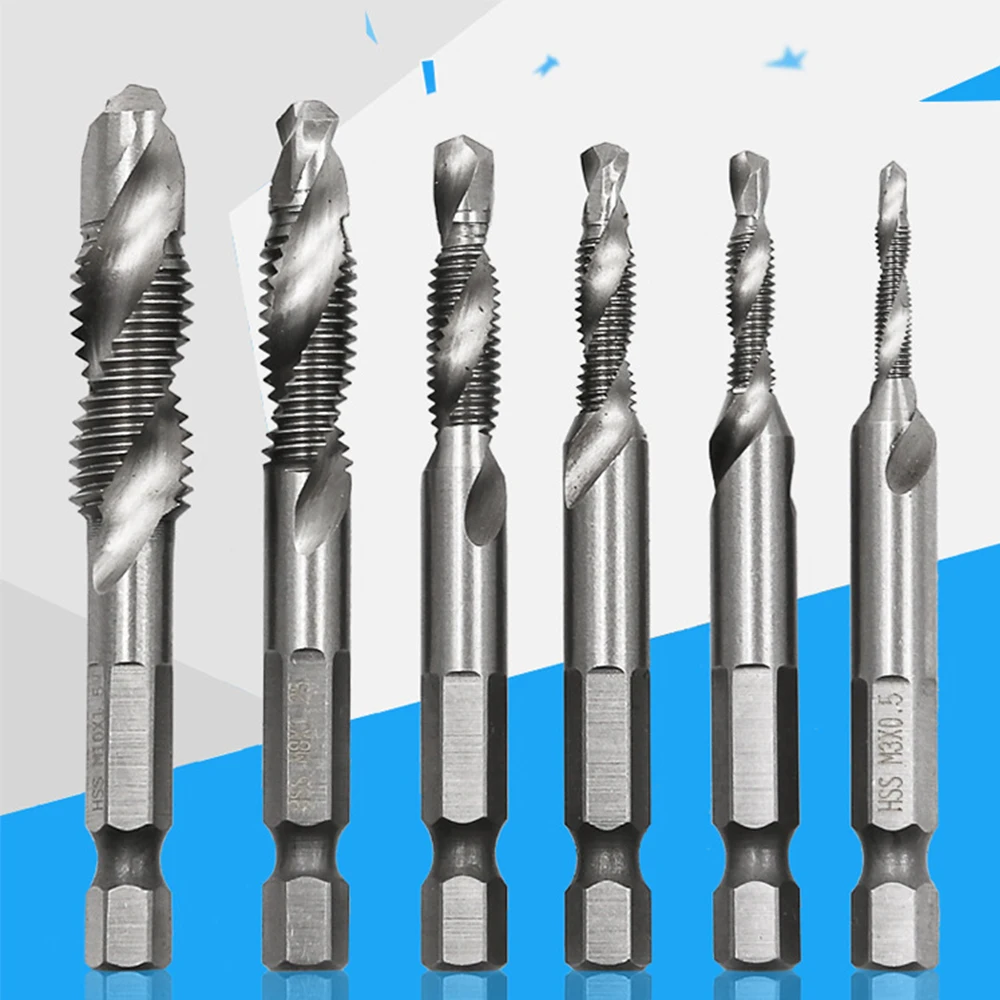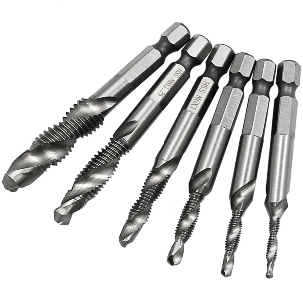 Сверло для метчиков с шестигранным хвостовиком винт из быстрорежущей стали дюйма, метрическое сверло под Метчик бит, для установки винтов, M3, M4, M5, M6, M8, M10, 6 шт.