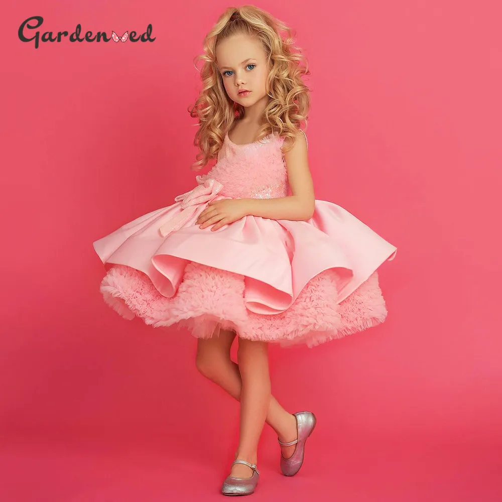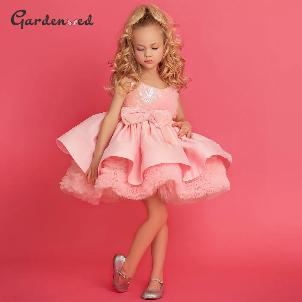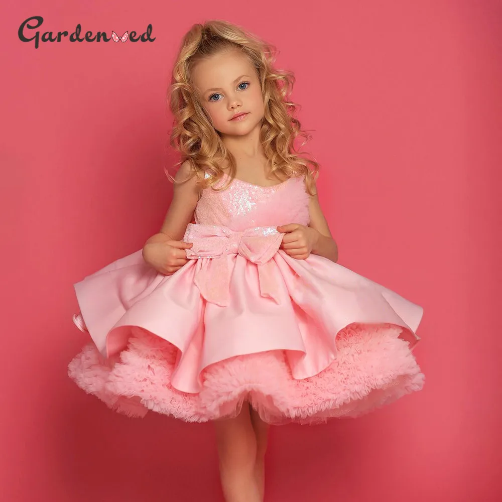Розовые платья для маленьких девочек Пышные Платья До Колена Для ма...
