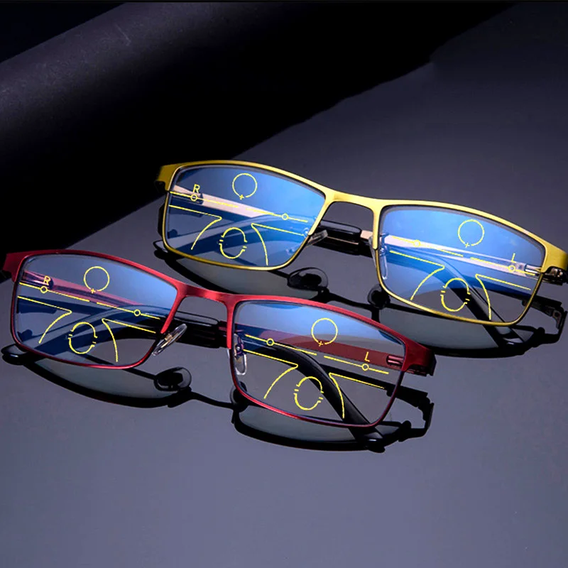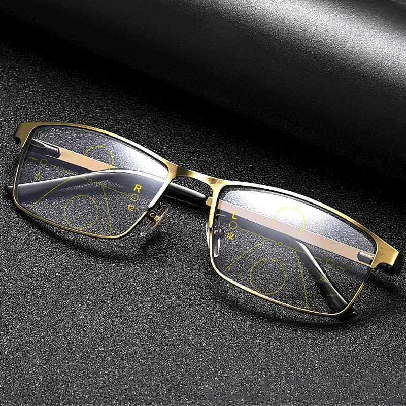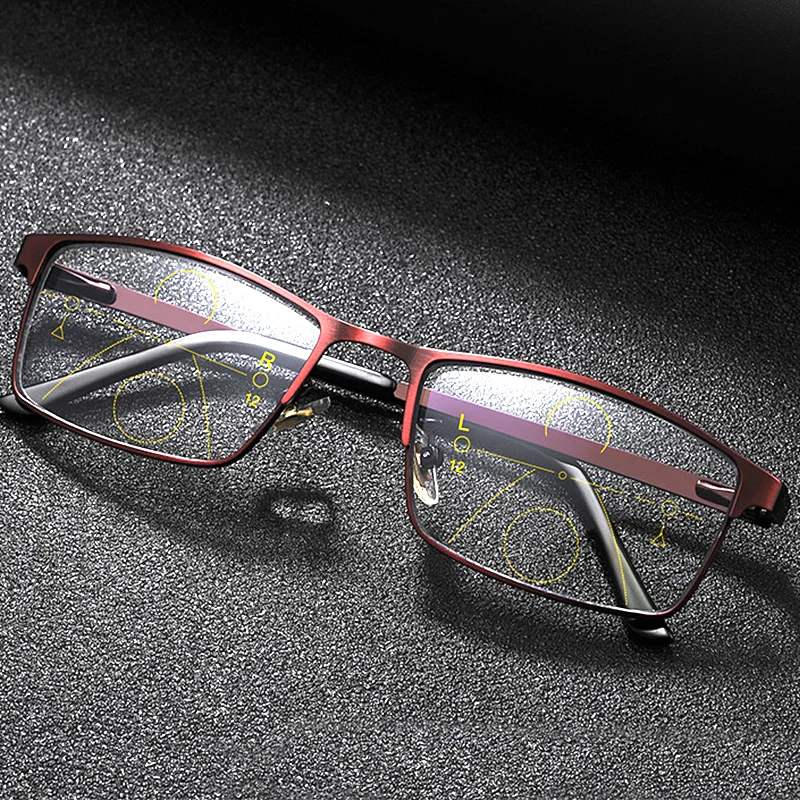 Мужские и женские мужские прогрессивные очки для чтения, Мультифокальные очки с защитой от ультрафиолетового излучения, пресбиопические очки, металлическая полуоправа, красный + 1,5 2,5