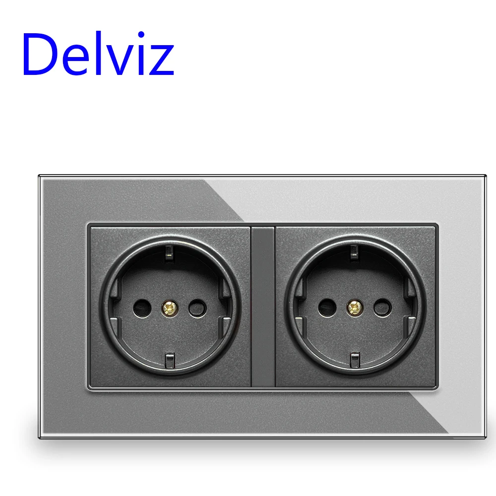 Delviz настенная розетка стандарта ЕС, закаленная серая панель из хрустального стекла, переменный ток 110 В 250 В 146 мм * 86 мм, 16 А, двойная розетка питания