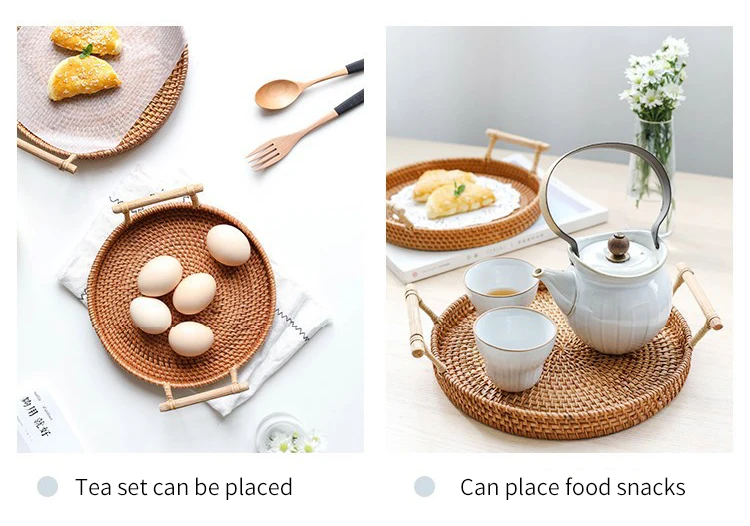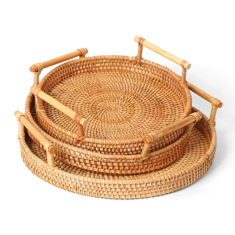 Круглый лоток для хранения фруктов, плетеная корзина для хранения из ротанга, поднос для хлеба, закусок, поднос для еды, настольный органайзер для всякой всячины