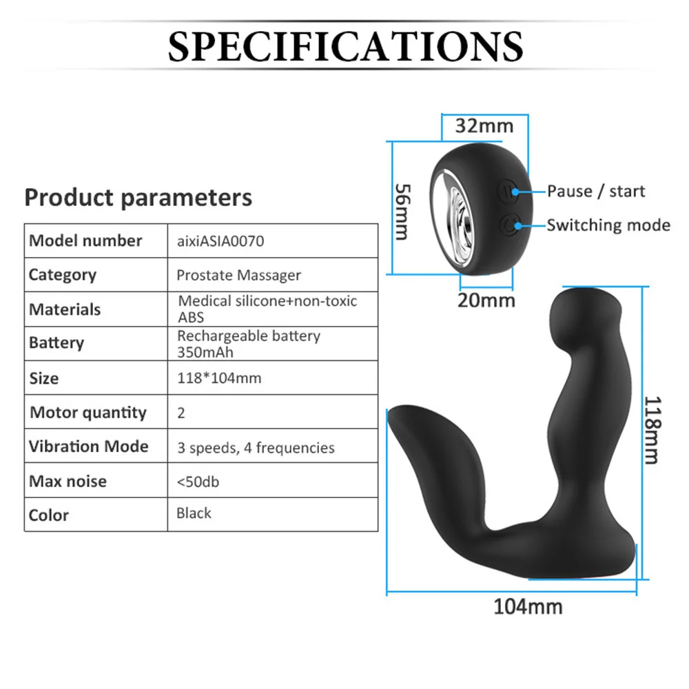 ОсобенностиМужской оргазм простатыМатериалМедицинский силикон и АБСЦветЧерныйРазмеры104*118 ммВес145,8 гПерезарядкаПерезаряжаемый USBВремя зарядки120 минутВремя использования90 минутИзогнутая голова с наконечником облегчает себя в анальной игре и обнаруживает прелести анального эротики с секс-продукцией; Массажер-вибратор для простаты.