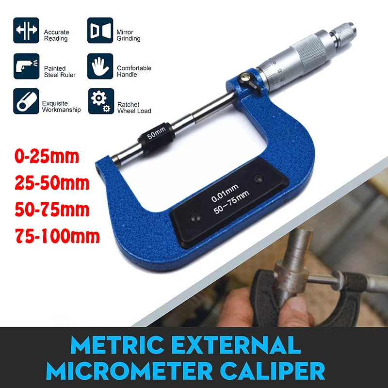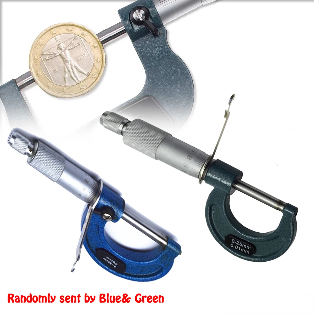 Верньерный Калибр 0-25 мм25-50 мм50-75 мм75-100 мм 0,01 мм метрический Калибр для измерительных инструментов синий и зеленый 1 шт. наружный микрометр