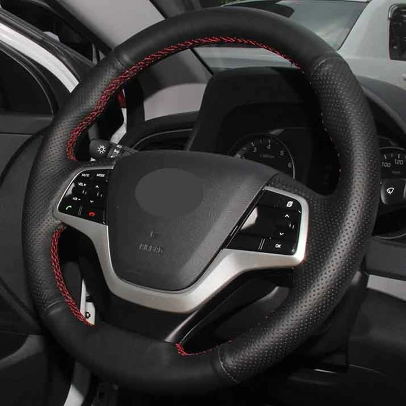 Кожаный чехол для Hyundai Elantra 4 Чехол рулевого колеса автомобиля-2016 Solaris 2019-2017, 2019, натуральная кожа черного цвета, сшитый вручную