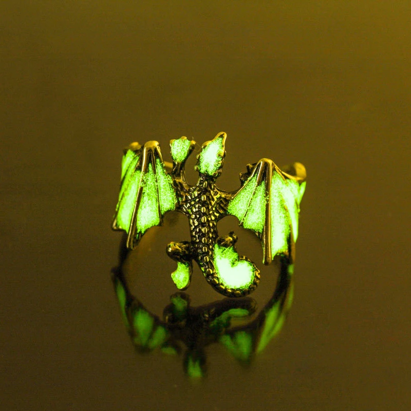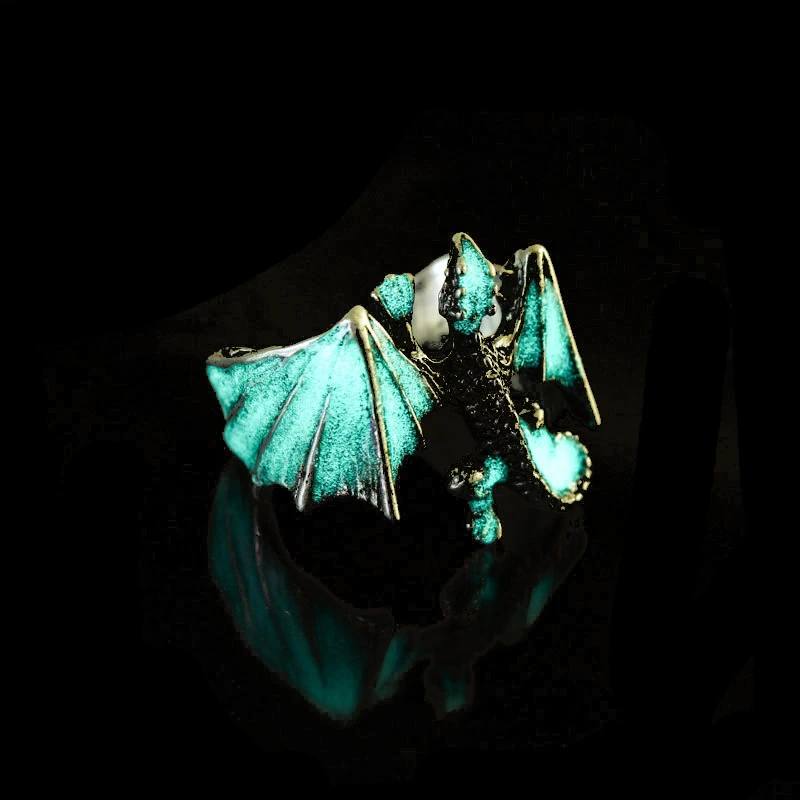 Женские винтажные светящиеся кольца в виде дракона, готическое двухцветное регулируемое Открытое кольцо в стиле панк, комплекты ювелирных украшений для Хэллоуина